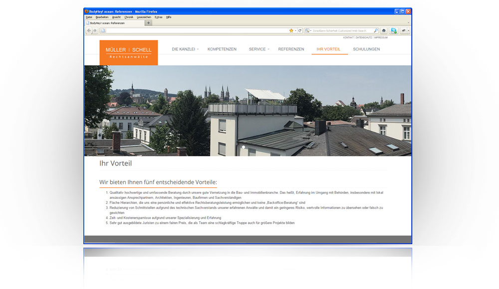 BodyHey! durfte die Website derRechtsanwaltskanzlei Müller | Schell umsetzen. Als CMS kommt hierbei wieder unser Steckepferd TYPO3 zum Einsatz.